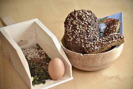 Glutenfrei, hefefrei und ganz ohne Mehl. Aus Topfen, Eiern, Ölsaaten, Nüssen und pflanzlich aktiven B-Vitaminen.
